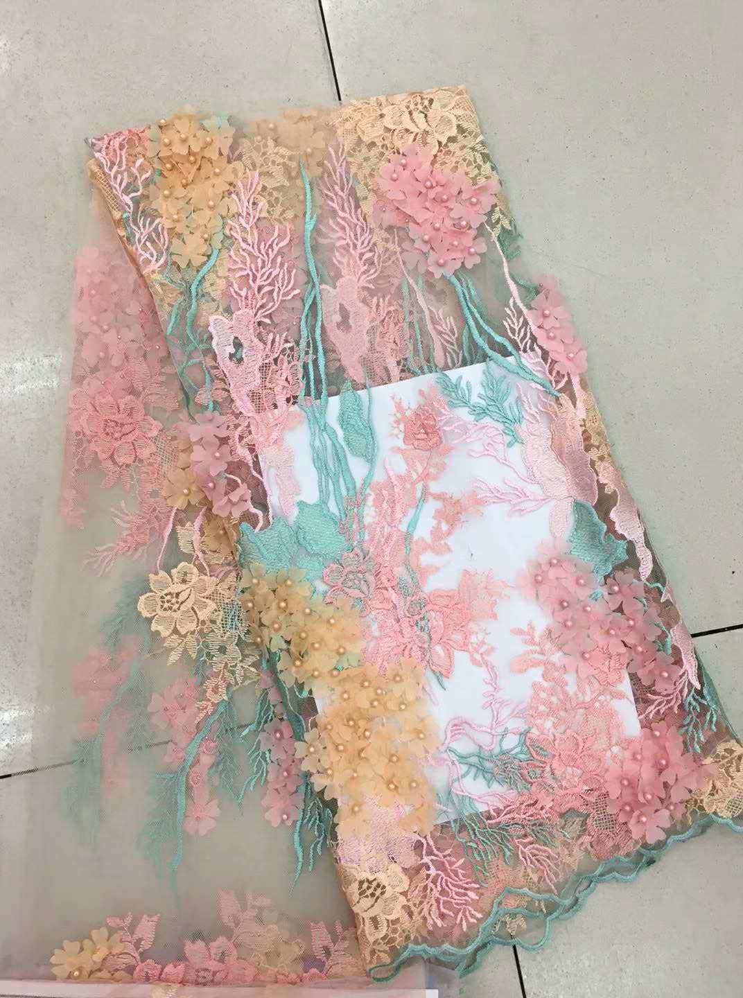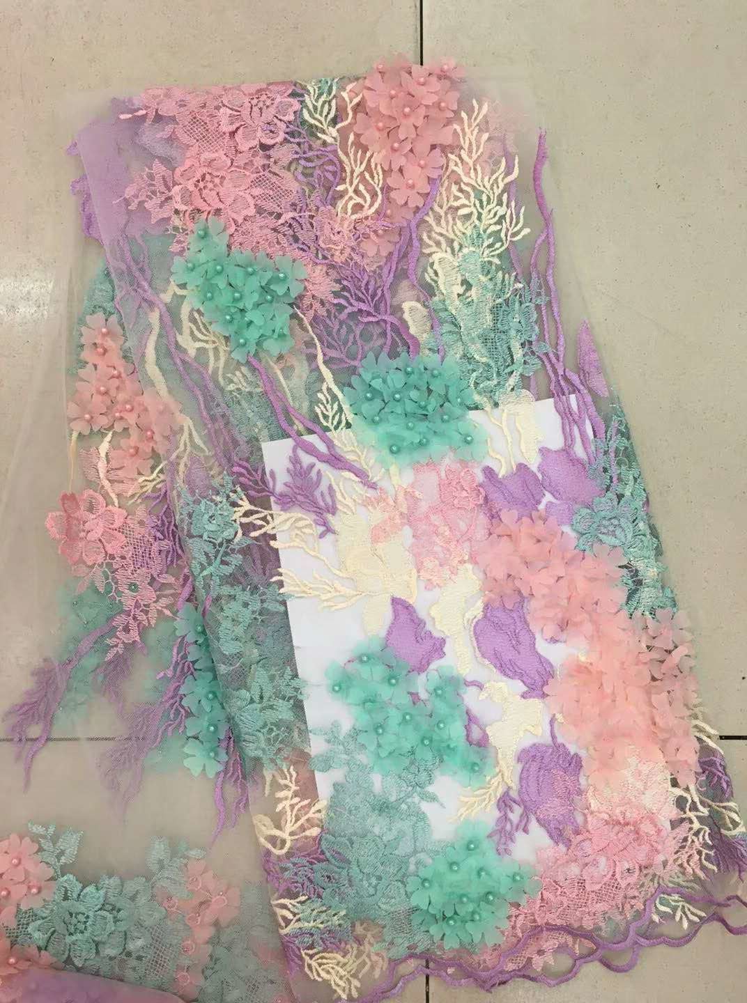 tessuto in pizzo con perline 3d, tessuto ricamato floreale multicolore smerlato per gonne sono popolari in tutto il mondo in più di 30 paesi