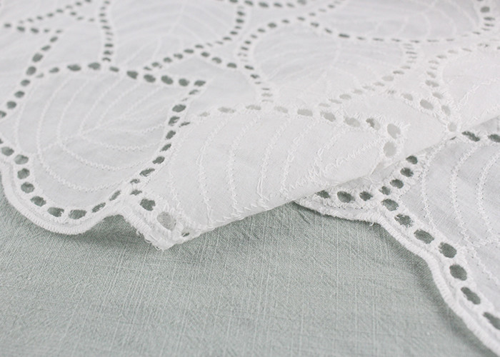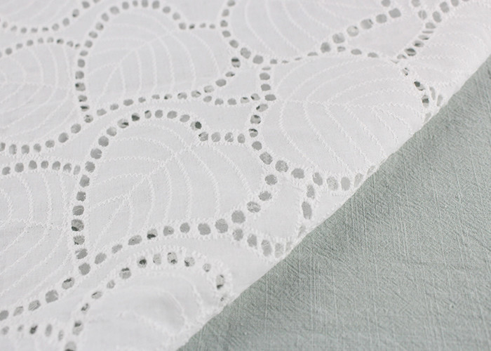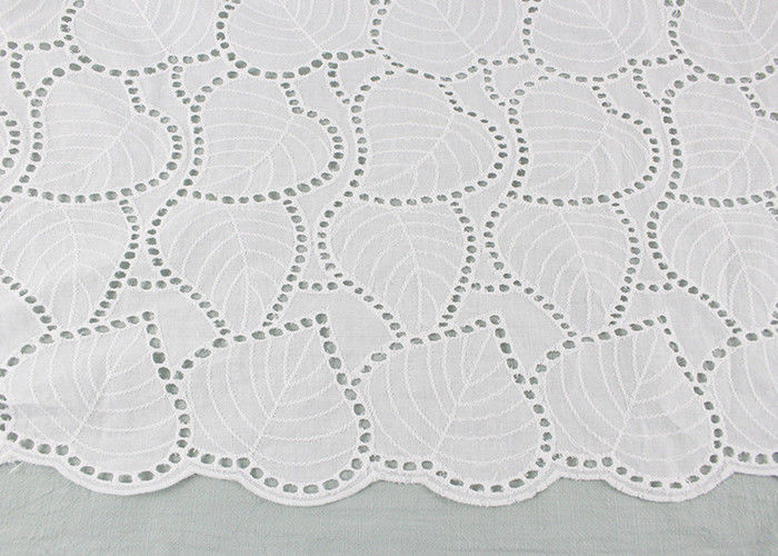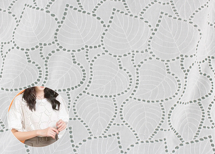 Off White Eyelet Cotton Lace Fabric Leaf Embroidery Patterns per abiti Camicie