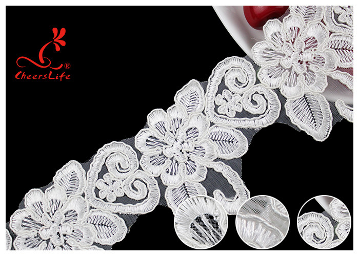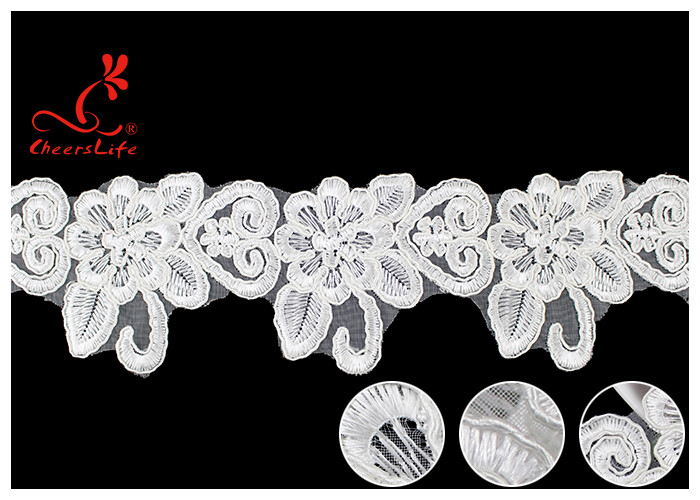 Guarnizione in pizzo floreale ricamato in nylon con cordoncino francese per abiti da sposa personalizzati